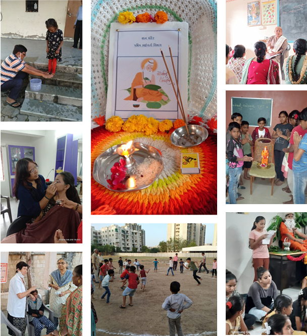 - Regular on-going sessions with children through Songs, Slokas, Bhajans, Stories and real – life incidents of great personalities