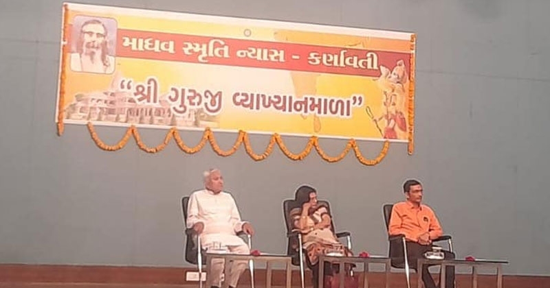 “Shri Guruji Lecture Series” was organized at Dinesh Hall, Karnavati from 16th to 17th February, 2023. In this 20th lecture series organized by Madhav Smriti Nyas, Karnavati, a two-day lecture was delivered by Padma Shri Dr. Meenakshi Jain as the keynote speaker on the topic “Essential Unity of India”. Here are the important excerpts from the lecture.